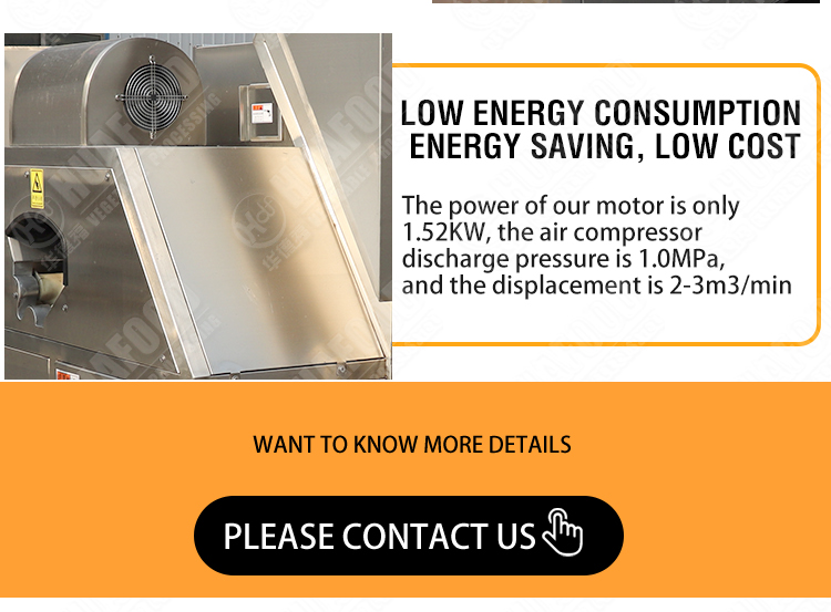A máquina de descascar cebola adota o método de processamento de descascar sem cortar raízes. Desta maneira, as cebolas descascadas são pequenas em volume de casca, alto rendimento, e o interior é limpo e higiênico sem poluição. É necessário que as cebolas em qualquer estado possam ser descascadas de uma só vez e removidas de forma limpa. A máquina tem sido amplamente utilizada na indústria de processamento de vegetais.